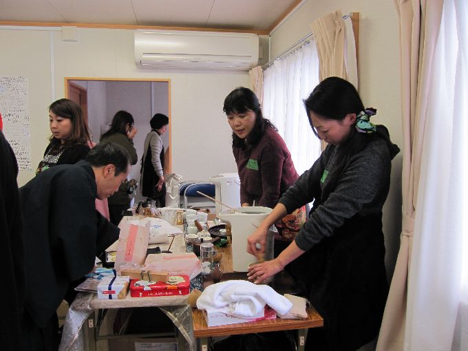 目的:サン・ファン館集会場にてお茶会を開催し、仮設住宅及びその周辺に住んでおられる方々に楽しんでほっこりして頂く。