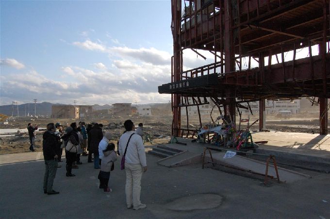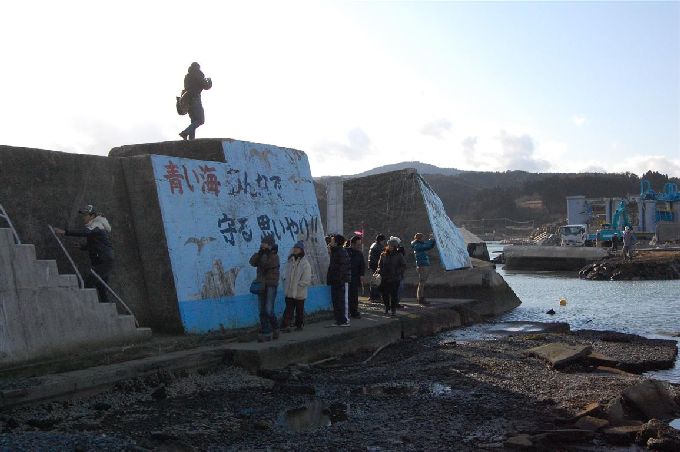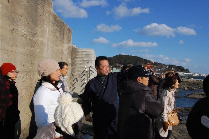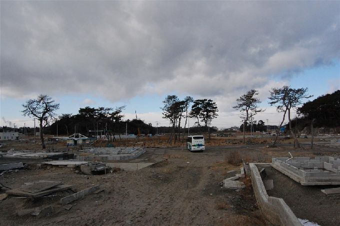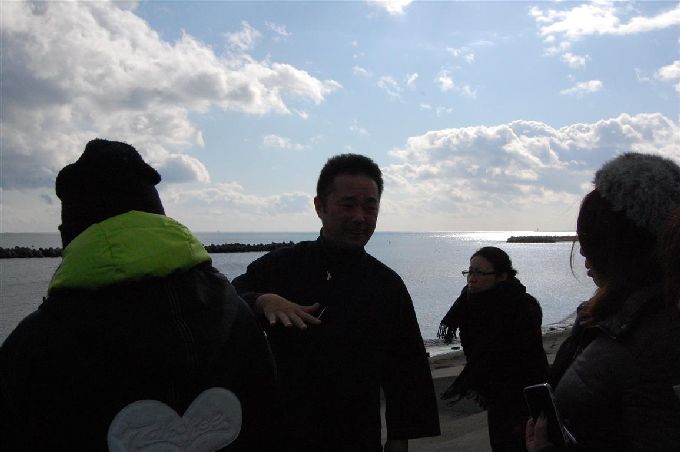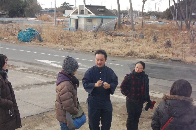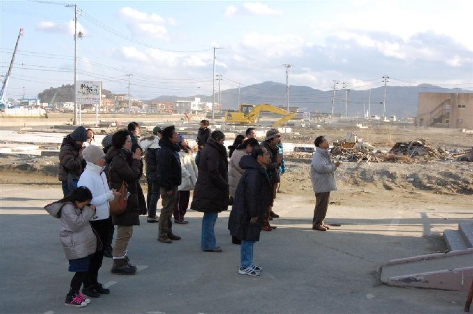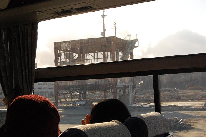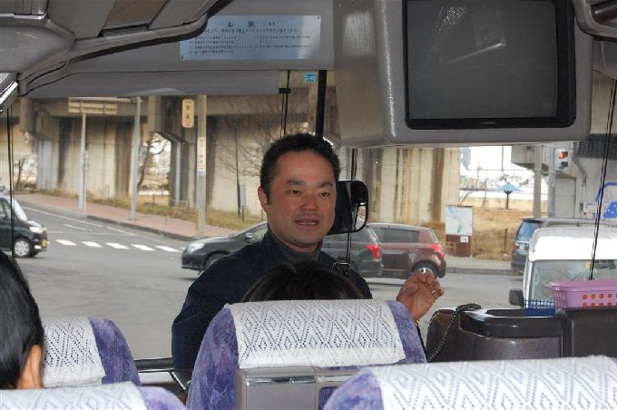この日の午前中は、塩釜復興の最前線に立つ矢部園の矢部さまに被災現場をご案内いただくバスツアーです。