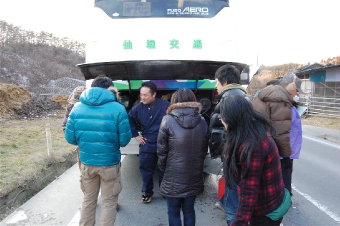 10:00~12:00 矢部園・矢部さまによる被災現場のご案内(バス)。