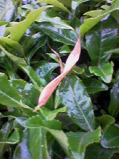 ![]() 茶色い物体が竹の落ち葉 下に見えるぴかぴかの葉が、 これから収穫する茶葉 | そう! 何が違うかというと、左の写真のような竹の落ち葉です。 竹というのは、基本的には常緑樹なのですが、 で、問題は何かというと、竹の紅葉する時期なのです。 いつだと思います? なんと! 竹は春に紅葉し、落葉するのです。 |