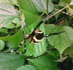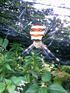 ![]() 恥ずかしがって逃げ出すクモ | 茶畑の近くには、大小さまざまなクモが クモの巣を張ります。 ジョロウグモ、オニグモ、コガネグモなどなどなど・・・。 |
