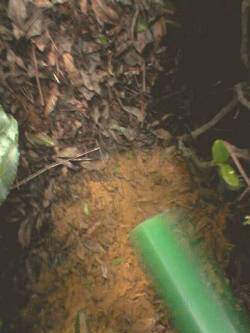 | 左の写真が、肥料をまいているところです。 下のほうに見えるみどりのパイプから、 そして肥料をまいた部分には、 「カビ!?」と思われる方もいるかもしれません。 油かすは有機肥料なので、土の中の微生物が、 下の右側の写真が、油かすをまいて、 |