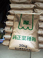 ![]() これがなたね油カス 有機肥料で、窒素成分が多い。 | さて今週は、茶畑から。 現在の茶畑での作業はというと、 この時期にまくのは、なたね油の油かすです。 油かすには、窒素が多く含まれており、 |