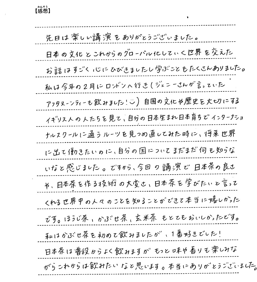 その時、日本茶やその文化を一緒に世界に伝えてね!