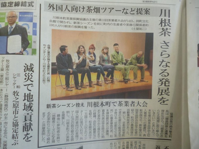 中日新聞にて、静岡県「川根町・茶業者大会」での講演をご掲載いただきました。