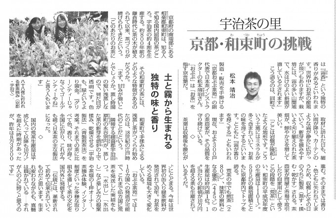 2015年4月15日付、聖教新聞に「宇治茶の里・京都和束町の挑戦」としてご掲載いただきました。