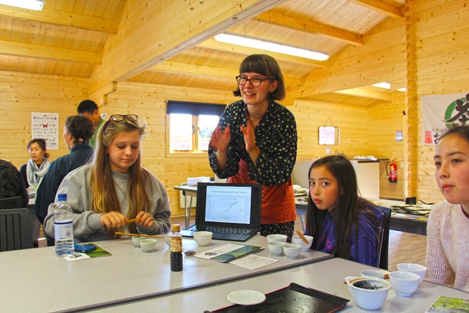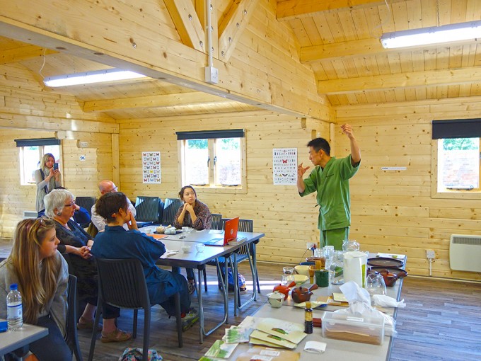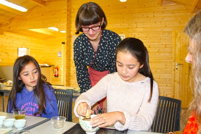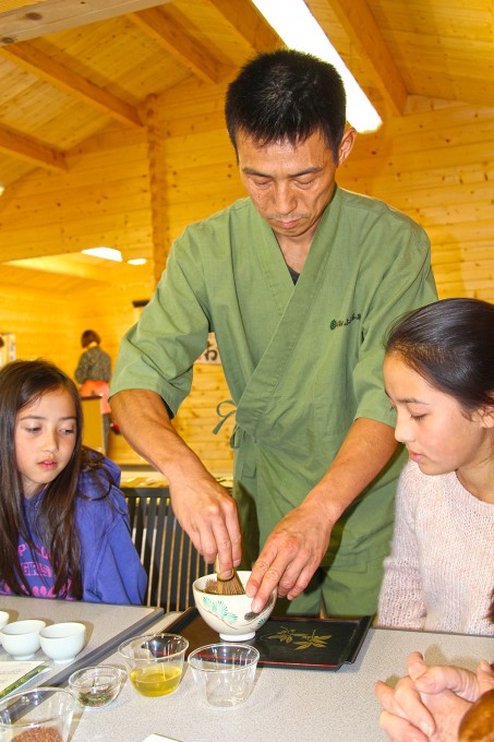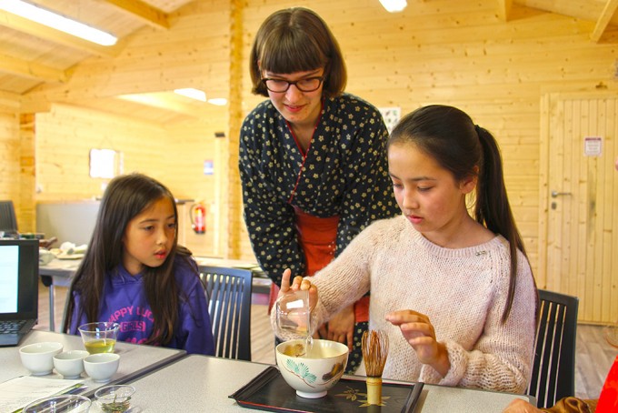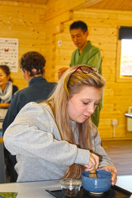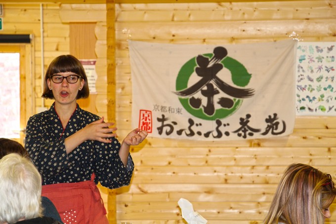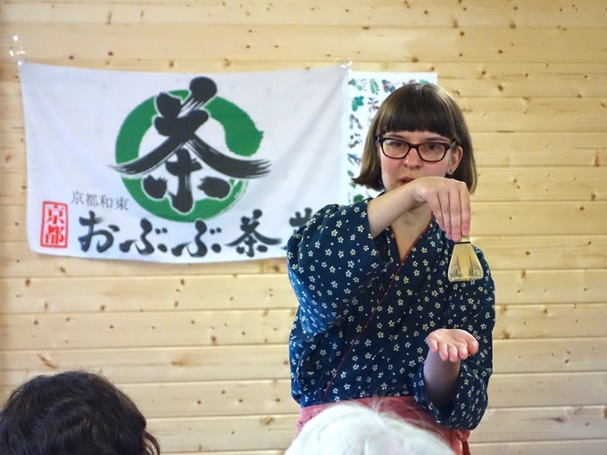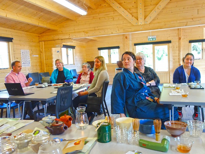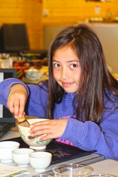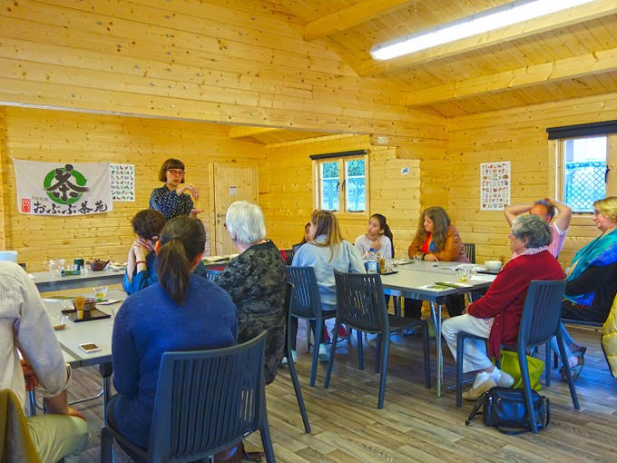 この日のお茶会は、少人数だったので、シモナによる抹茶のお点前の披露、かぶせ茶を温度を変えて3煎いれて、茶殻のおひたしを食べたり、参加者の方自身で抹茶を点ててもらったり、と盛りだくさんの内容にできました。