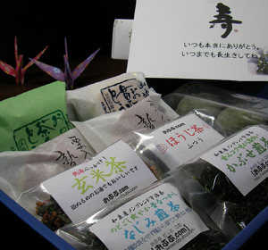 日に日に秋が深まってゆく9月ですが、来週、敬老の日ですよね。 あなたのおじいさんやおばあさんは、今でもお元気ですか? 人によっては、おじいさんおばあさんは遠く故郷で暮らしていたり、または、近くで一緒に暮らしていたりするかもしれません。 僕の祖父母は、父方も母方もすでに他界してしまいました。 今思えば、もう少し、洒落たことをしてあげればよかったなとも思います。 父方のおじいさんとは、小学生のころ、よく一緒に風呂に入っては、戦争の話を聞いたものです。 話好きのおじいさんで、僕は、湯船でゆでだこになりながら、昔話を聞いていました・・・。 と、僕の昔話もつきないので、このあたりにしておいて、今日は、その敬老の日にぴったりな京都の和菓子と宇治茶の紹介です。 今回ご紹介するのは、三種類の和菓子と四種類の宇治茶の詰合せ。 和菓子はもちろん京都の茶産地で三代つづく老舗の和菓子屋「みどりや」さんの手作り和菓子。 お茶は、おぶぶの店長あっきーが作った茶葉まで食べられる100%ピュアな宇治茶です。 きれいにまとめてみたのでご覧下さい↓^v^ |