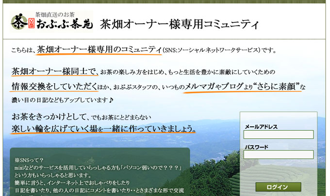 こちらのコミュニティで、茶畑オーナーさま同士の交流をさらに深めていただけるようになりました。