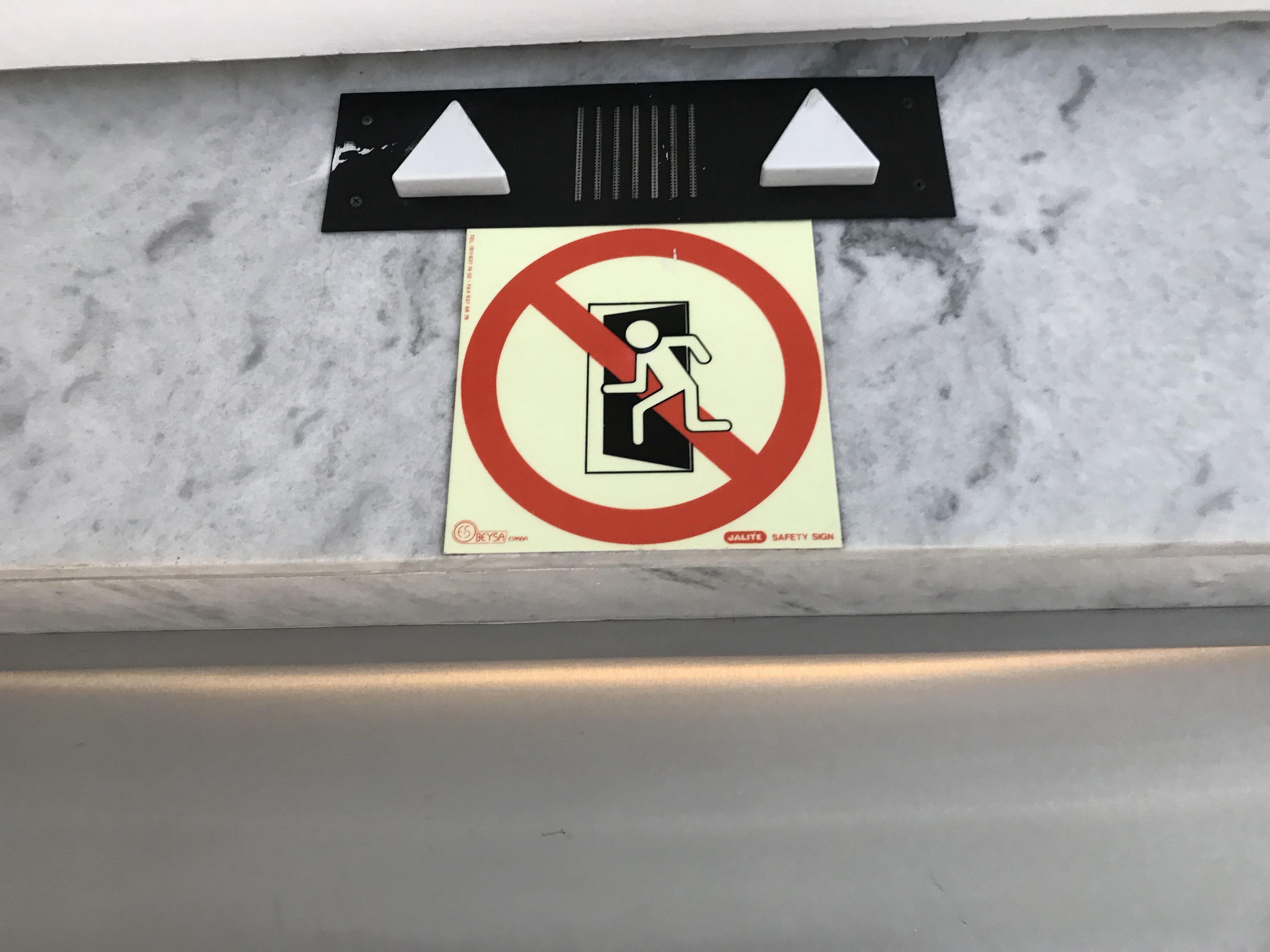 そして↓こちらはエレベーター入り口ですが、「飛び込み禁止」でしょうか?