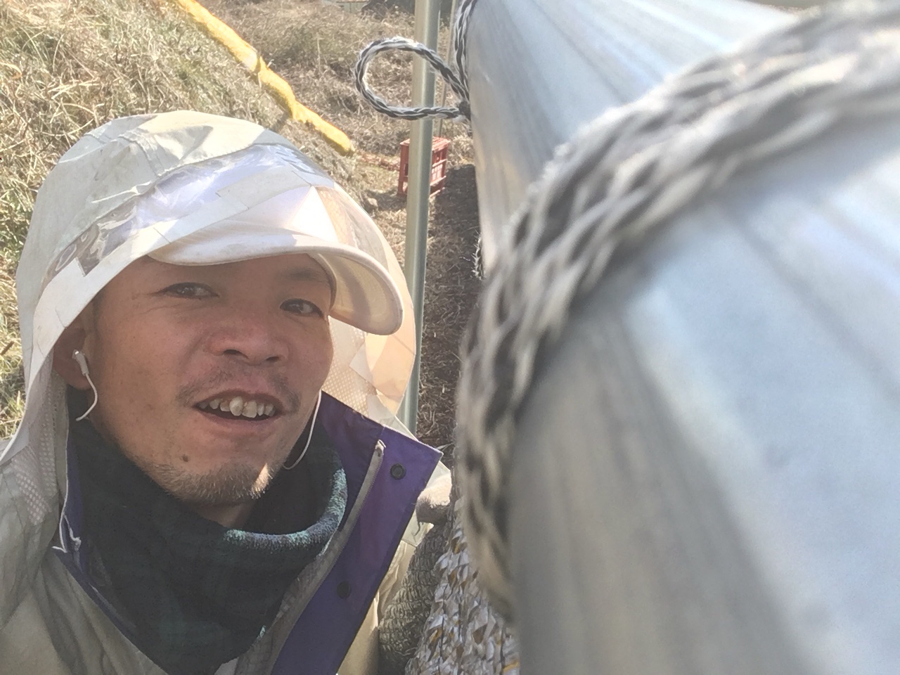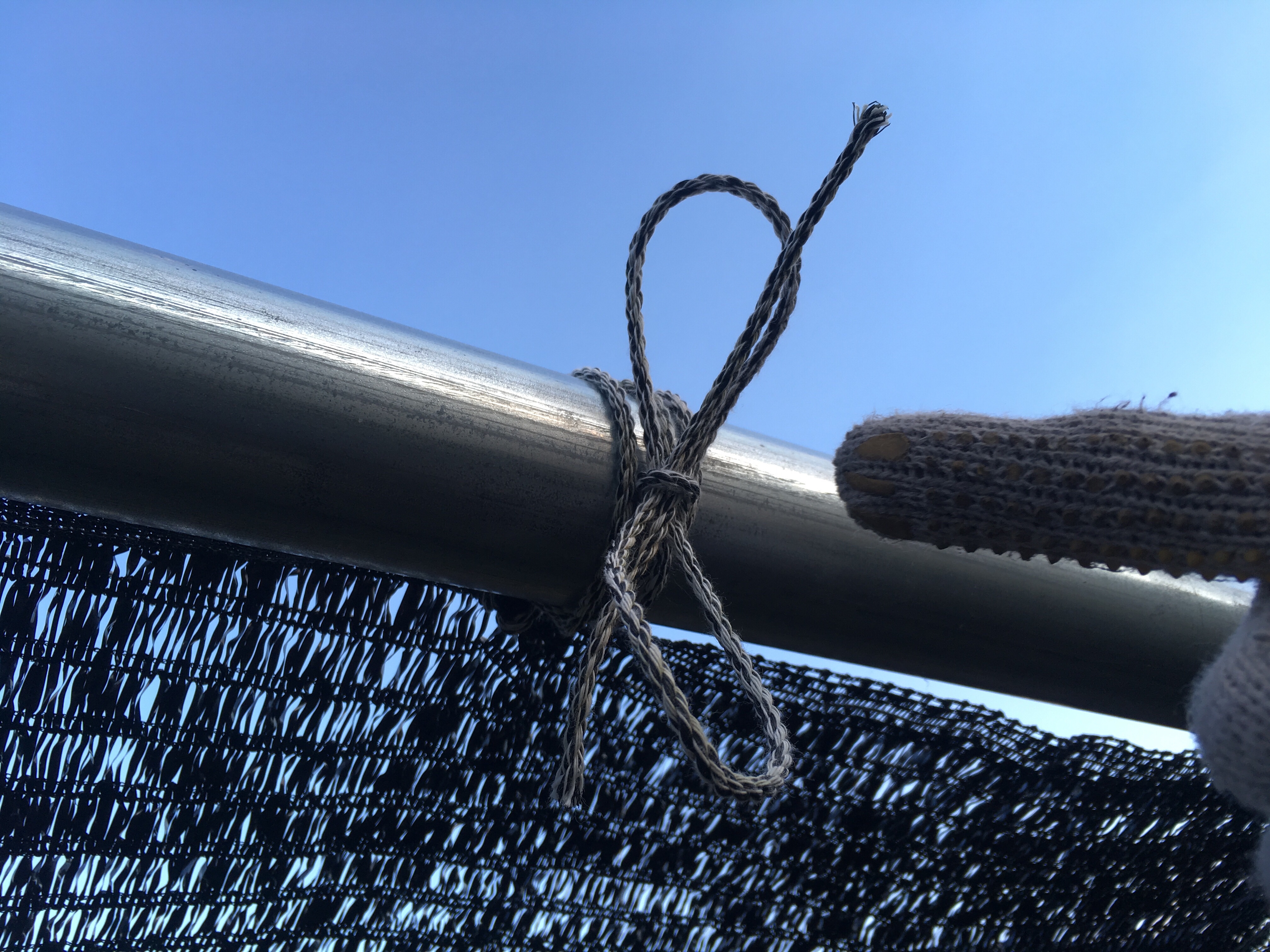 すでに棚は去年にできてたな〜ってな感じで、ここにヒモ付きネットを張っていきます!!!