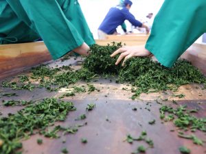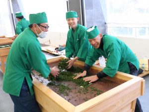 今週の火曜日に京都の手揉み大会でした。大会は毎年3月にあります。私は一昨年に和束の手揉み保存会に入って、大会に出る今年初めってでした。今年は11チームでした:南山城村とか、京田辺とか、宇治とか。その中に和束は5チーム。おぶぶからAkkyと私。茶葉を揉むのは5時間掛かりますけど、茶葉が変わるのを見る事出来るから、本当に楽しいです。茶葉はどんどん細くなって、茶葉の色もどんどん濃くなって行きます。今年4番になって、来年また大会に出て和束のために頑張るつもりです。