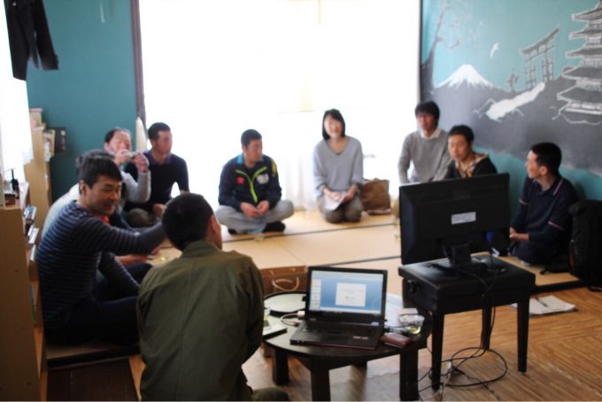 りんご、もも、なし、トウモロコシ、米などの生産者の方々10名が来てくださり、おぶぶで取り組んでいる活動についてお話しました。