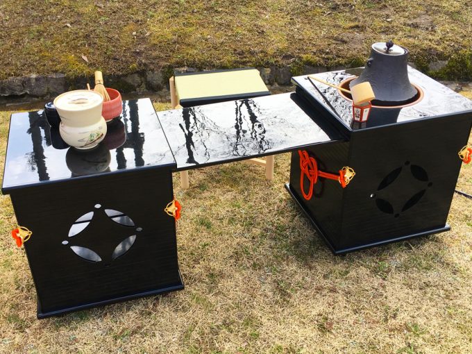 暖かい日でいい天気でしたから、私と中井先生は野点手前しました。おぶぶのインターンの一人コニーちゃんも参加しました。