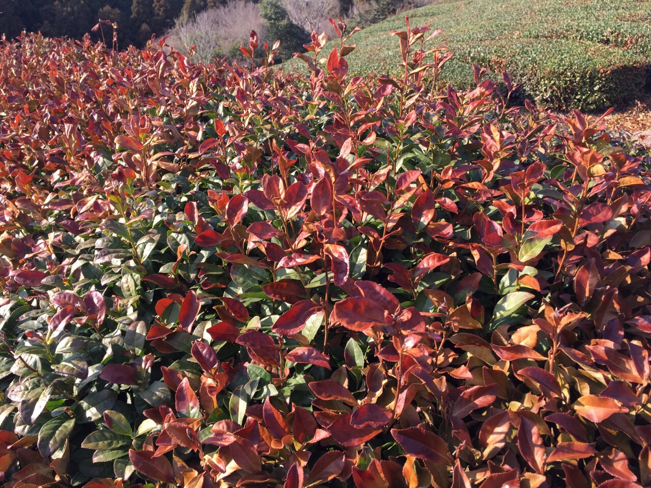 最近、標高が高い風通しの良い山の茶畑に行くと、茶畑が赤くなっちゃっているところを見かけます。