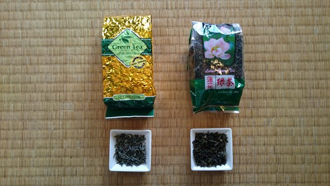 写真は、ベトナムの茶文化について学びながらみんな試飲したベトナム茶です。左がベトナムタイグエン省の釜炒り緑茶、右が蓮茶です。