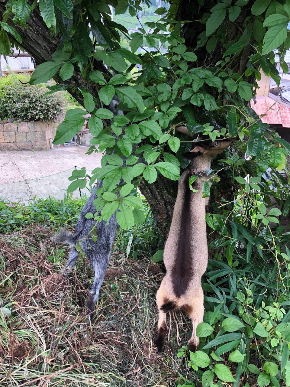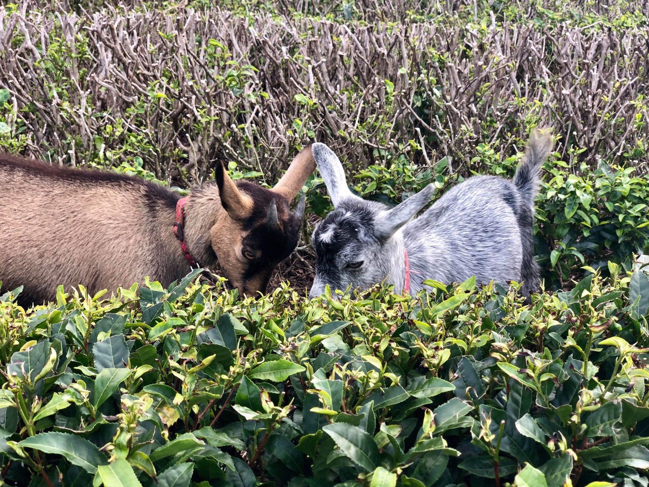 4月からおぶぶのNew staffとして、除草作業を担当してくれているトカラヤギの「せんちゃ」と「ほうじちゃ」も、皆さんの茶摘みに紛れて草を食べてくれています。