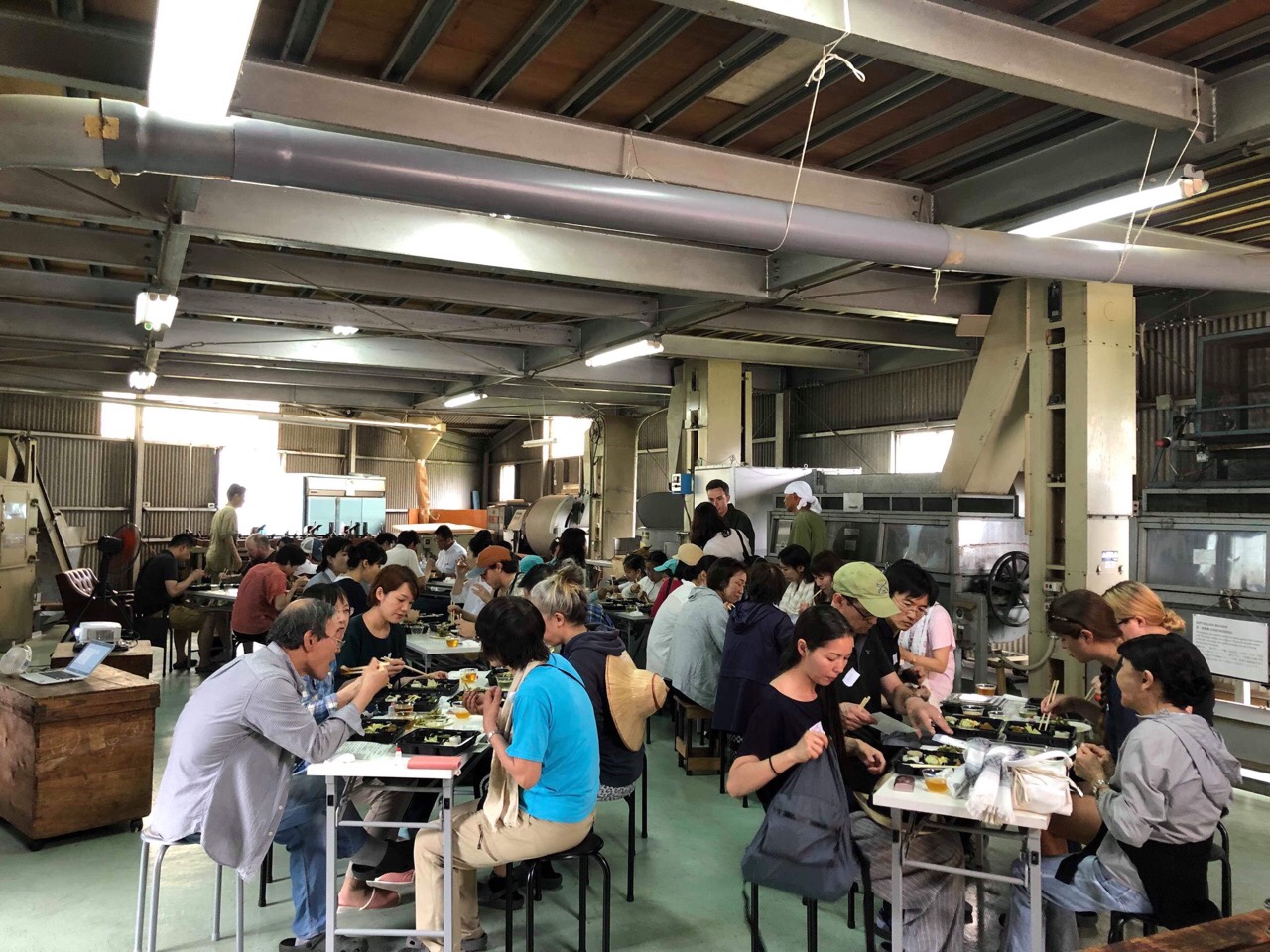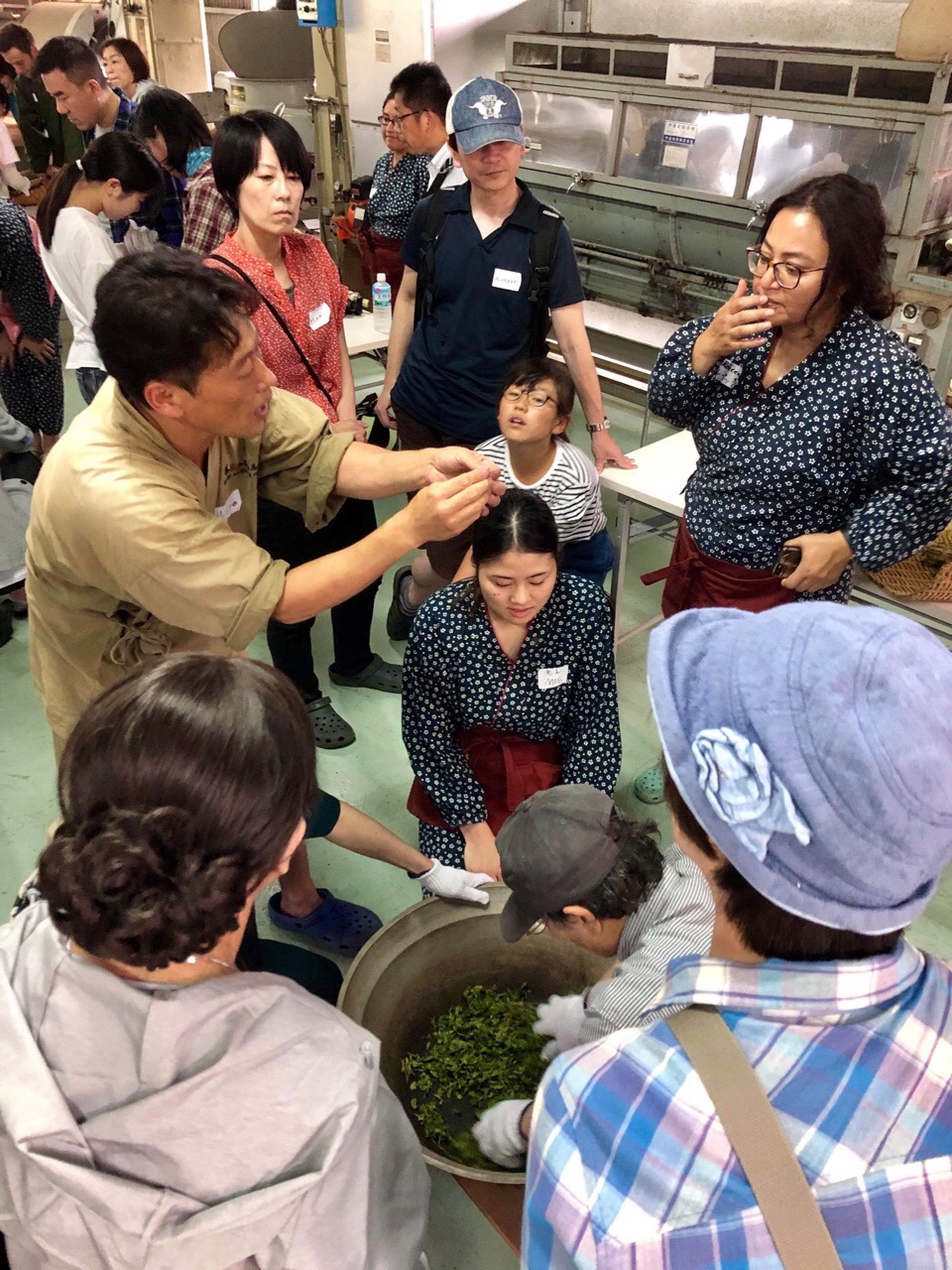 この時、茶葉から水蒸気が立ち上り、良い香りが会場である、煎茶工場に広がります。