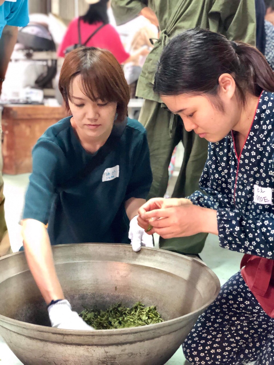 すっかり釜炒り手もみ製茶を習得してくれており、参加者のtea lovesやインターン生に、製茶方法を実践しお伝えしてくれています。