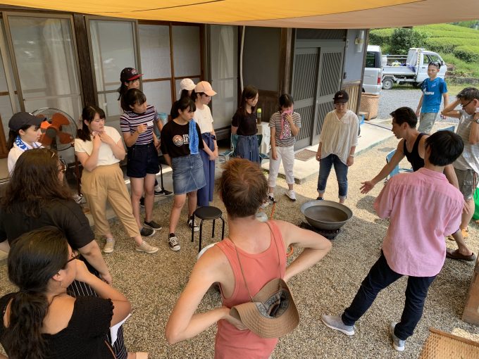 そして研修2日目は、おぶぶ代表、茶農家アッキーをお迎えし、茶摘体験と製茶体験、そして出来上がったお茶の試飲と2日間の振り返り発表会をして、プログラムを終えました。