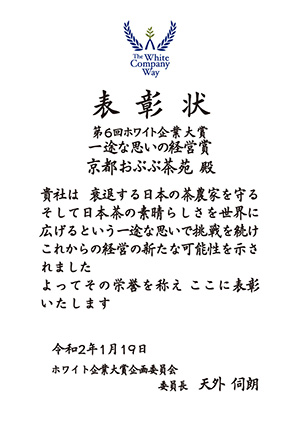 この度、京都おぶぶ茶苑はホワイト企業大賞・特別賞を受賞いたしました。