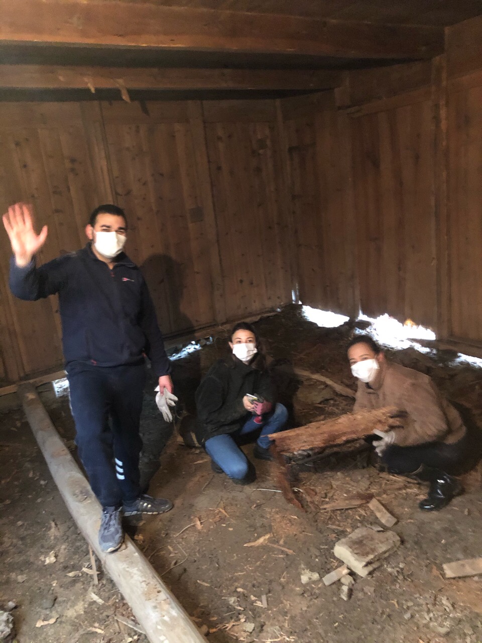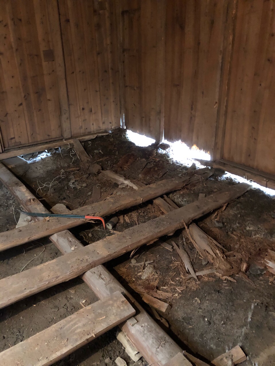 長い年月で痛んでしまった床を一度撤去し