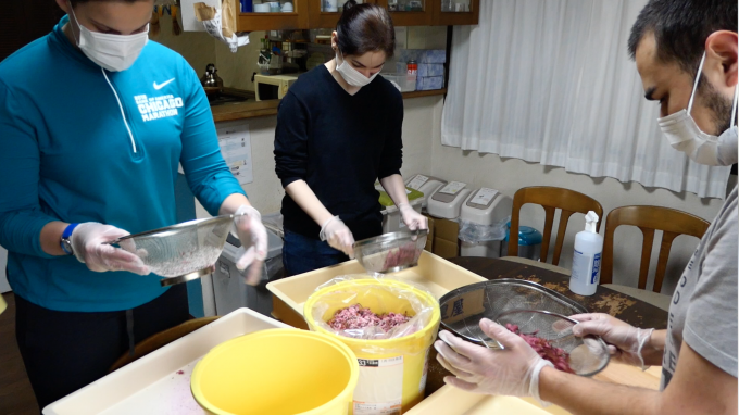 年末から来ているブルガリア人のニックと、2月の中旬から来ているアメリカ人のアレックスとドイツ人のニコール、3人でここ最近とても頑張って手伝ってくれたので、なんと既に50キロが出来上がりましたよ!
