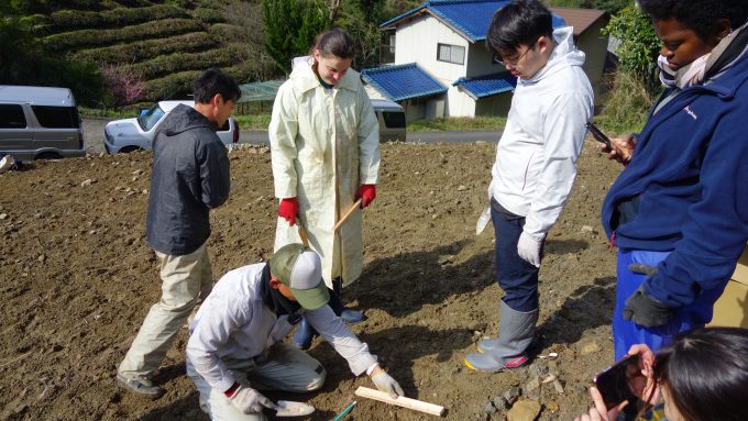 スタッフ、インターンのみんなでお茶の幼木を植えました。