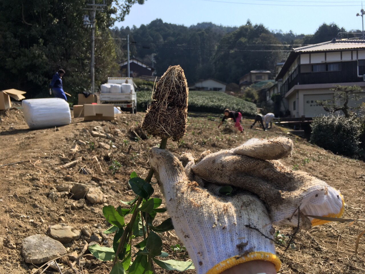 今回はお茶の苗を、綺麗にした元々畑だった所に植える!をレポートしまーす!