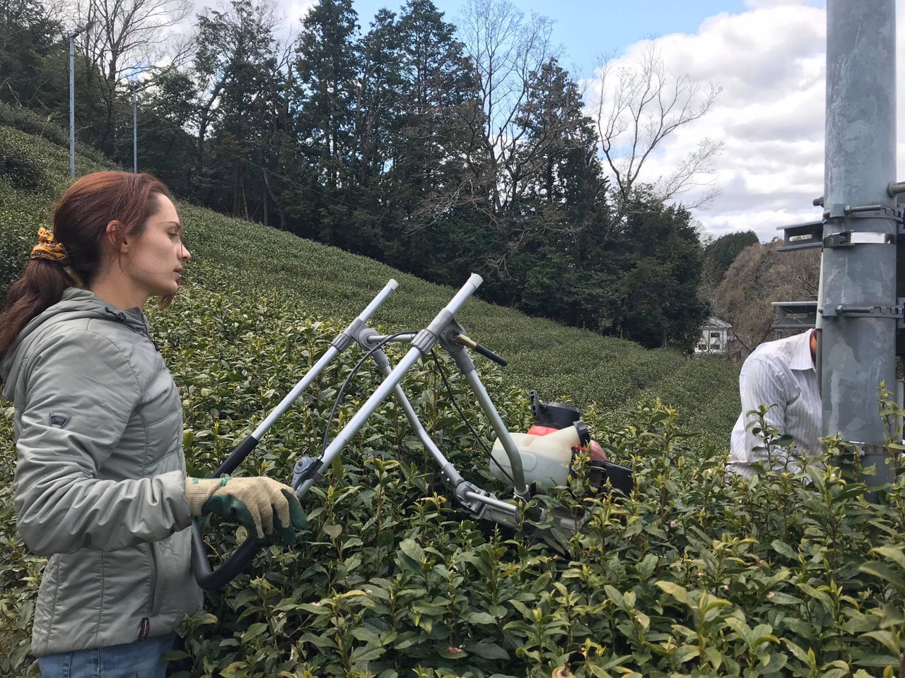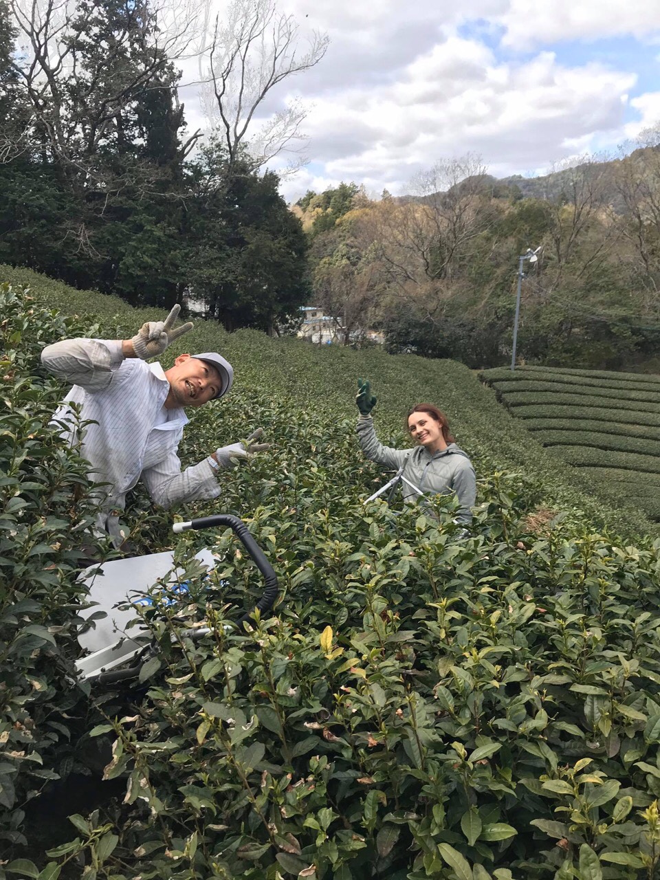 インターン生に片方持ってもらって、バリバリ枝ごと刈ります!