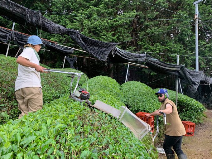 3週間経ったら、ヒロさんの指導でスタッフ全員人生初めて、本格的に玉露の収穫と製茶に挑戦!!
