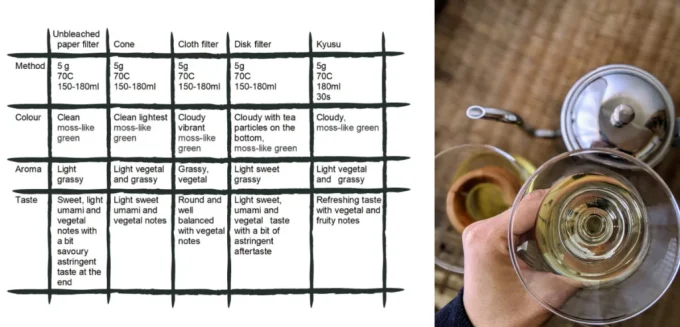 どの結果も味は素晴らしく品質も似ていましたが、やはりフィルターの違いはお茶の色と味に影響を与えました。