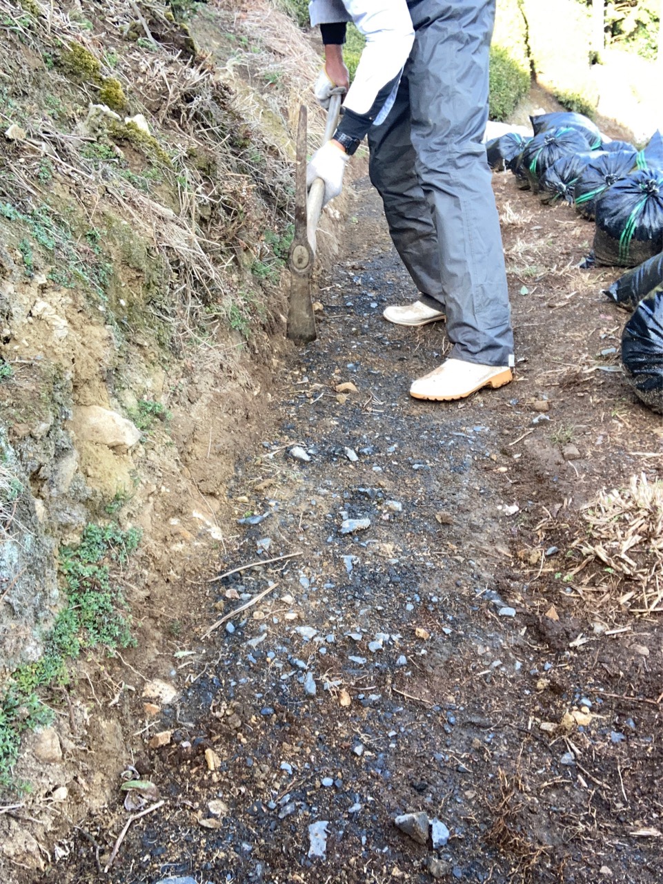 そんな落ちた土をツルハシでガシガシ削っていきます!