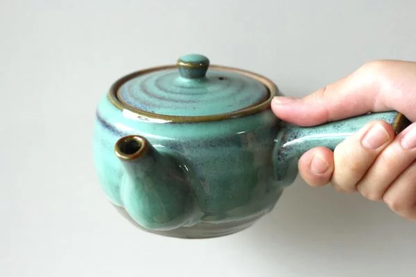 最後にご紹介する「急須」は、ティーポットの日本版です。しかし、日本の急須は少し特殊です。西洋や中国のティーポットによく見られる丸い取っ手ではなく、横に伸びた取っ手がついていることが多いのです。そのため、親指で蓋を押さえながら手首を回転せるだけで、片手で簡単に注ぐことができるのです。小さなカップを一度に注げるので便利です。また、宝瓶のように茶葉をこすための網や穴が付いています。
