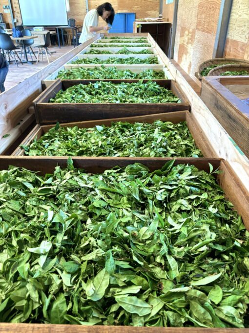 そして全量を選別した後にトレイに並べて、一晩萎凋します。