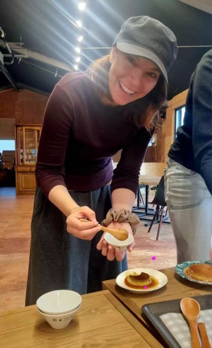 サラ・マクダニエル(愛称マック)は、アメリカのアリゾナ州出身。彼女は祖父母を訪ね、スペインの家庭料理を楽しんだ子供の頃の思い出を話してくれました。中でも彼女のお気に入りはフラン!「これ、すごくおいしいわ……!完璧!」と、いつも褒め言葉を惜しまないマックは、私が型から上手に取り出したフランを見て驚きました。玄米茶パウダーを入れたオリジナルの味を試した後、彼女は「本当に家庭の味」と言ってくれました。玄米のトースト風味がクリーミーなデザートにバランスよく爽やかさを添えていて、際立っていたと思います。