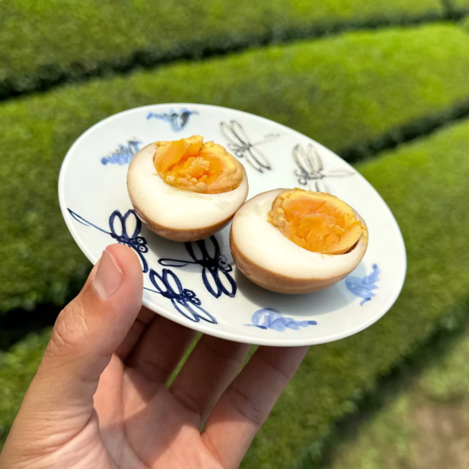 ちょうど良い味になったら、日本茶卵の出来上がりです。冷やしてお召し上がりいただくか、常温でお召し上がりください。一口ごとに日本茶の風味を存分にお楽しみください。