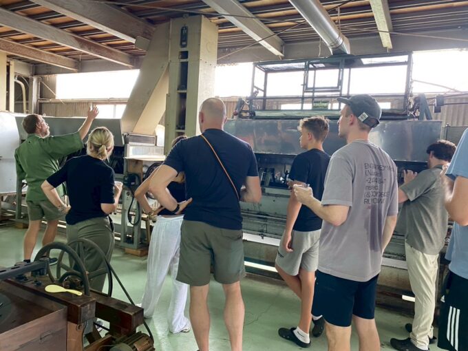 次に製茶工場へ行き製茶機械を見学しました。実際に機械を稼働させながら説明されてお