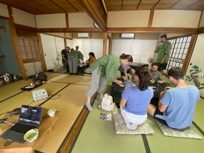 に自分でお茶を淹れてみる場面や抹茶を立てる体験もあり、非常に楽しそうでした。