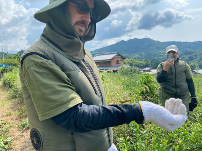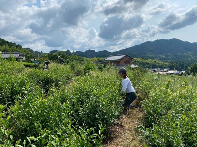 朝は3人のインターン生と茶園の草むしりをしました。外は蒸し暑かったですが、途中でお