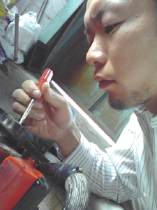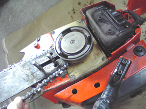 こないだの台風で畑に倒れた木を切った後機械の中にたまった木くずを掃除したりして、次のために整備してます!