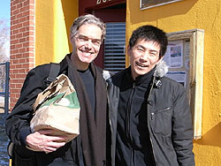 リチャード・フリーマンさんと一緒に 太陽がまぶしすぎて、エライ顔の二人。(笑) |