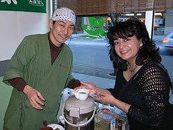 クララさんは、【おぶぶNEWS】の熱烈な読者でもあり、一年前から今回のアメリカツアーのことを楽しみにしてくださっていました。^v^ ということで、今回、ほうひんを使って、風の煎茶の入れ方をレクチャー♪