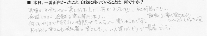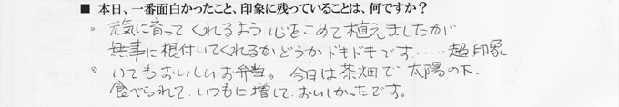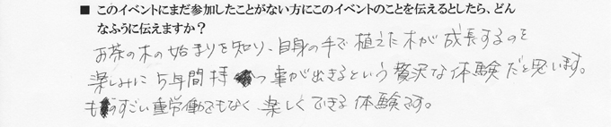 自分で植えたお茶の味、楽しみにしていてくださいね。