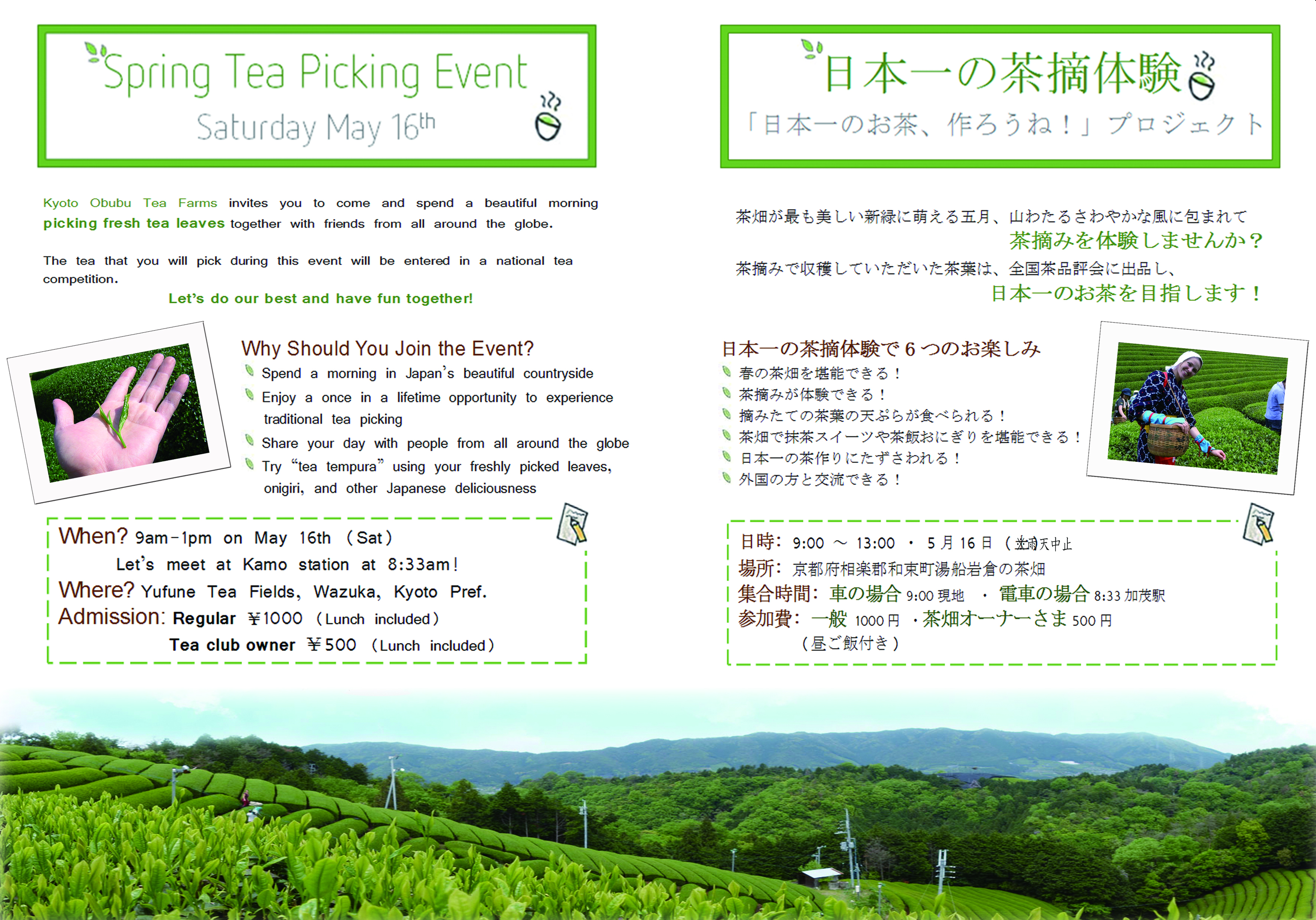 あなたも春の茶畑で茶摘を堪能し、そして日本一のお茶作りに参加しませんか?