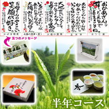 半年間・茶畑一坪のオーナー権と母の日限定の五種類のメッセージ付『言葉のお茶』がセットになった、お得なセット。