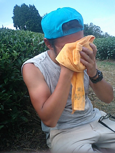 助っ人けんじくんも、このとおり、半袖焼けした上腕部の白さを一気に挽回すべく(?)タンクトップで気合を入れて臨んでます!