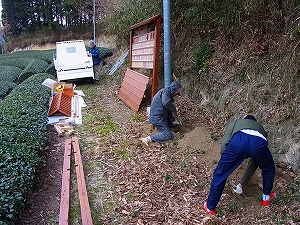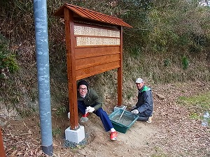 設置にあたっては、1枚目のとき同様、茶畑オーナーの松本忠義さまに多大なるご尽力・ご指導をいただきました。(写真真ん中)