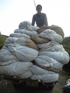 私、祥太も初めて茶刈袋を軽トラに乗せることに挑戦しました。